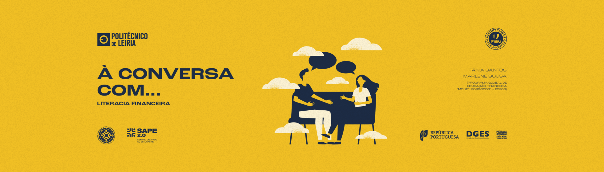 No âmbito do Projeto SAPE 2.0 do Centro de Apoio ao Estudante (CAE), do Instituto Politécnico de Leiria, convidam-se os estudantes, mas também os interessados da comunidade académica em geral, a assistir à sessão “À conversa com… Tânia Santos e Marlene Sousa” que irá ser subordinada ao tema “Literacia Financeira” (Programa Global de Educação Financeira “Money for Goods”).