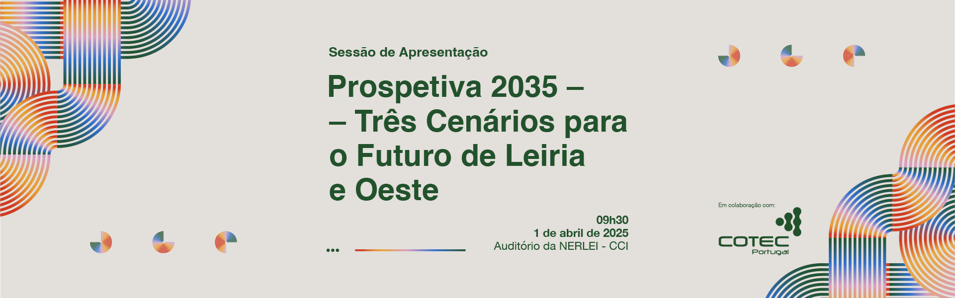 O Instituto Politécnico de Leiria (IPLeiria) promove, no dia 1 de abril de 2025, a partir das 10h00, a sessão ‘Prospetiva 2035 – Três Cenários para o Futuro de Leiria e Oeste’, onde serão apresentados cenários prospetivos que ilustram potenciais caminhos de transformação do ecossistema de Leiria e Oeste, com o propósito de contribuir para um debate informado sobre o futuro da região. O evento tem lugar no auditório da NERLEI/CCI – Associação Empresarial da Região de Leiria – Câmara de Comércio e Indústria, em Leiria.
