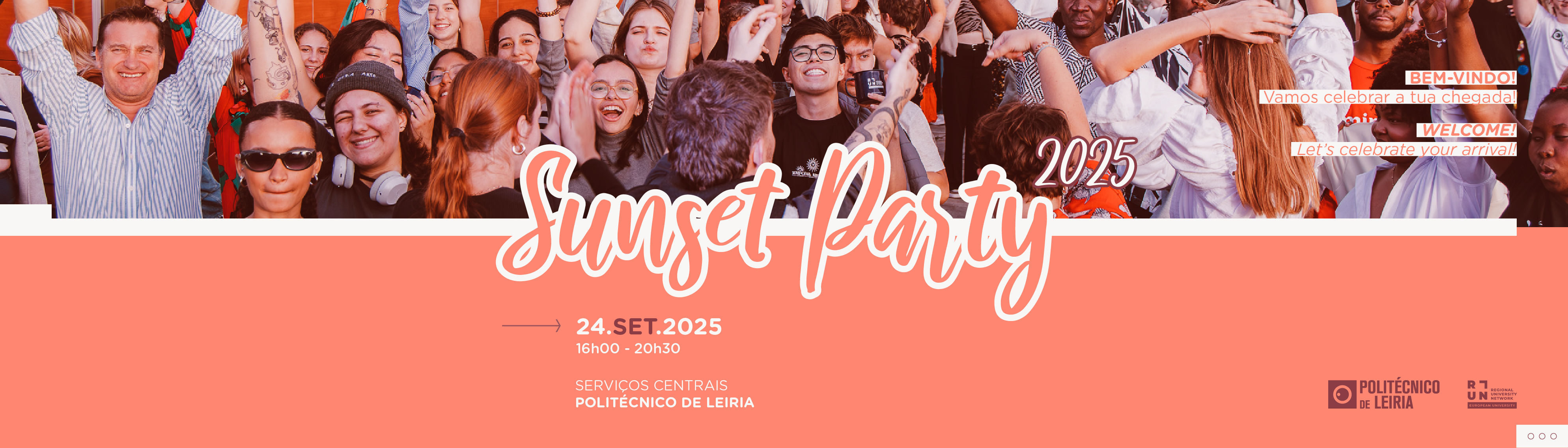 Estamos entusiasmados por te receber no Politécnico de Leiria! Para marcar esta etapa da tua vida, vamos realizar a Sunset Party 2025, no próximo dia 24 de setembro, das 16h00 às 20h30, no terraço e jardins dos Serviços Centrais, em Leiria (Rua General Norton de Matos).