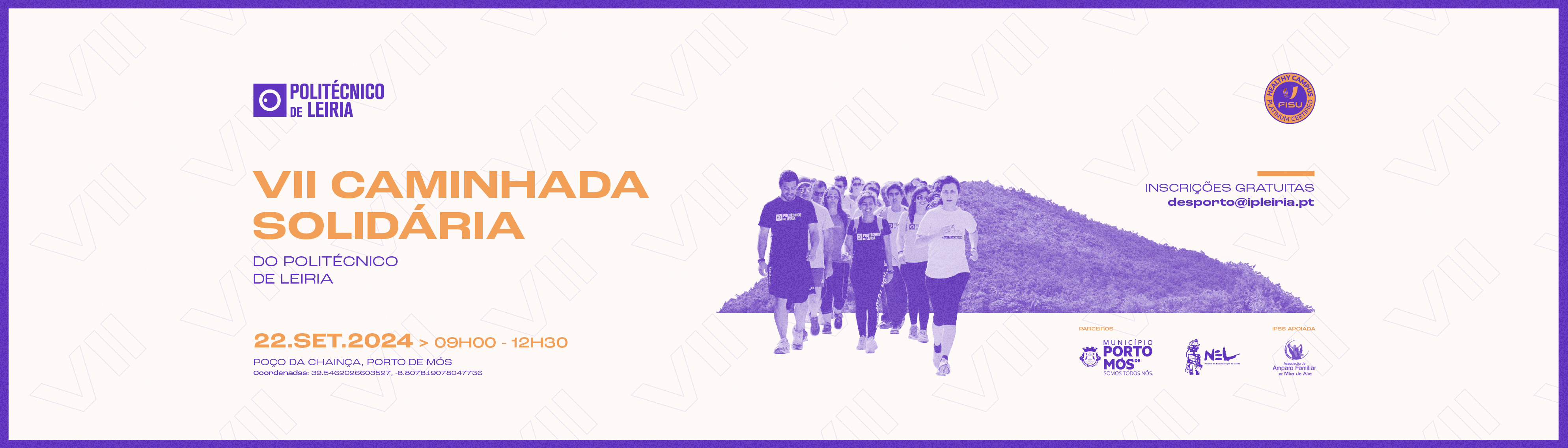 O Instituto Politécnico de Leiria convida toda a comunidade académica a participar na VII Caminhada Solidária que se realiza no próximo dia 22 de setembro, em Porto de Mós.