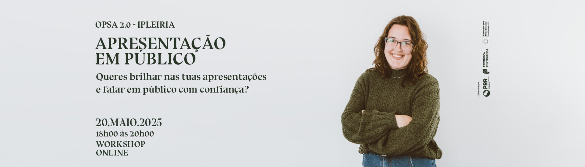 » A próxima ação será no dia 20 de maio, das 18h00 às 20h00, em formato online, com o tema: “APRESENTAÇÃO EM PÚBLICO”. Neste Workshop irás aprender estratégias para superar o nervosismo, cativar a audiência e apresentar as tuas ideias com impacto. Potencia o teu valor em trabalhos, projetos e futuras oportunidades profissionais.